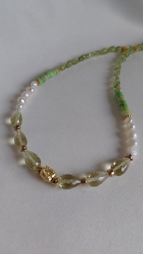Necklace Peridot & Pearl & Lemon Quartz