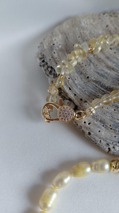 Materials : Lapis Lazuli,Smoky Quartz,freshwater Pearls & Citrine with gold accents.